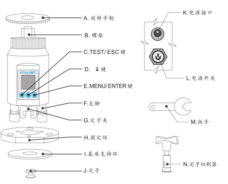 产品介绍 德国HTechMT AT200-10 数显附着力测试仪是一款操作简单且多功能的设备,既适用于实验室又适合现场使用,用于评估涂层与基材之间的附着力。其10mm定子提供了广泛的测试量程,从2.5MPa到60MPa,全量程的精度为±2%。该测试仪配备数显式显示屏,支持MPa、psi和bar等多种力值单位,同时具备临近极限值声音报警功能,便于操作。此外,它还可通过可充电电池供电,轻便易携带。AT200-10系列还提供多种定子和配件选择,包括14mm、20mm和50mm的定子以及固定环和胶水,符合ASTM D 4541、ISO 4624和ISO16276-1等国际标准,是一款高性能的附着力测试工具。 用一个定子黏贴到涂层表面测试涂层和基材的附着力。执行标准:ASTM D 4541, ISO 4624, ISO16276-1 产品特性 - 操作简单 - 适用于实验室和现场 - 四种定子可选 - 量程可以达到60MPa, 精度是全量程的±2% - 单位:MPa,psi和bar - 临近极限值声音报警 - 可充电电池供电 产品结构